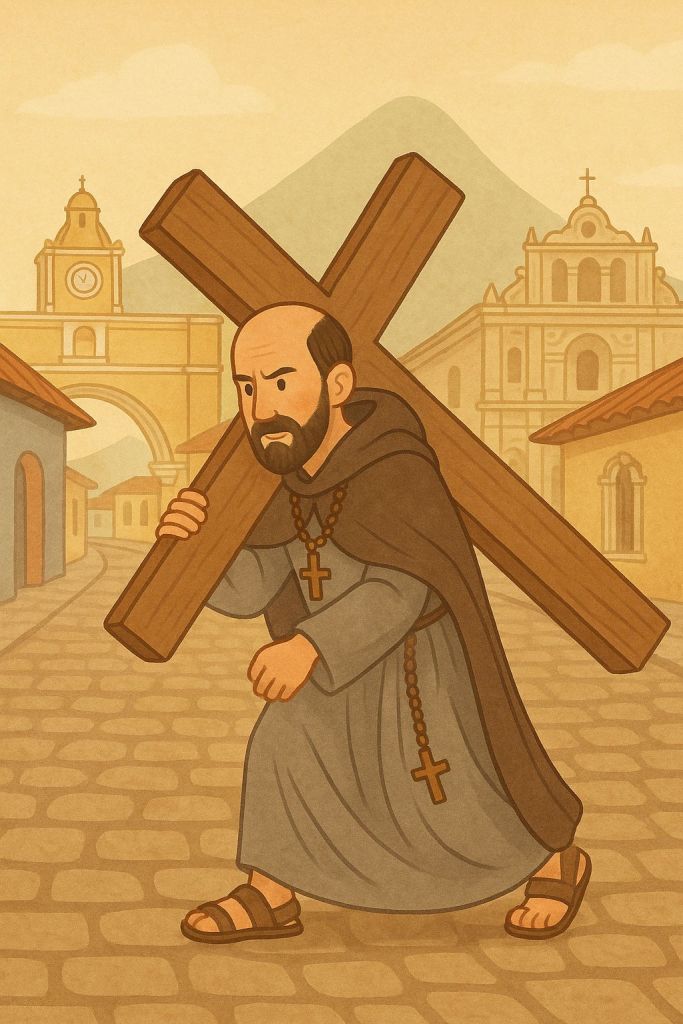 Se cuenta que el Hermano Pedro, lleno de fe y amor por Cristo, solía subir una colina donde había una antigua imagen de Jesús crucificado. Él pasaba largos ratos orando frente a ella, especialmente por los enfermos y los pobres.
